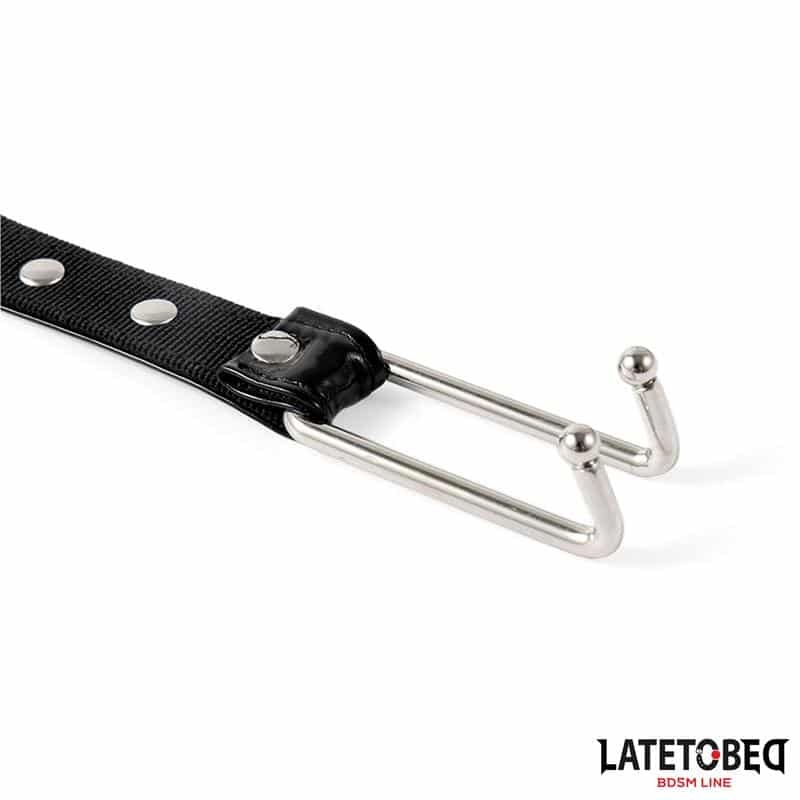 Denne udsøgte halsbånd giver en unik mulighed for at udforske kraftudveksling og sensorisk leg. Den integrerede næsekrog tilbyder en distinkt form for subtil, men dyb kontrol, der giver mulighed for præcis vejledning og en intensiveret oplevelse for den underdanige. Dens alsidige design gør den velegnet til forskellige BDSM-scenarier, fra guidede gåture til indviklede scenespil, hvilket forbedrer både de æstetiske og funktionelle aspekter af dine møder. Den komfortable pasform sikrer, at fokus forbliver på oplevelsen, ikke ubehag, mens de sikre D-ringe muliggør ubesværet integration med snore og andet tilbehør, hvilket udvider dine muligheder for udforskning.